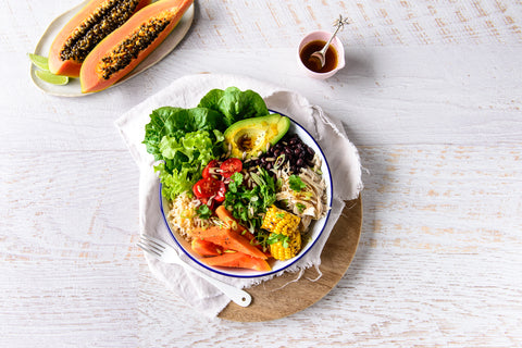 You can substitute frozen corn kernels for fresh and simply sauté them with a tsp of dressing before adding to the bowl.