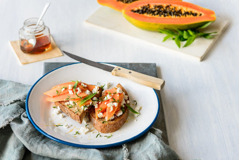 Papaya, Goat Cheese & Honey Toast