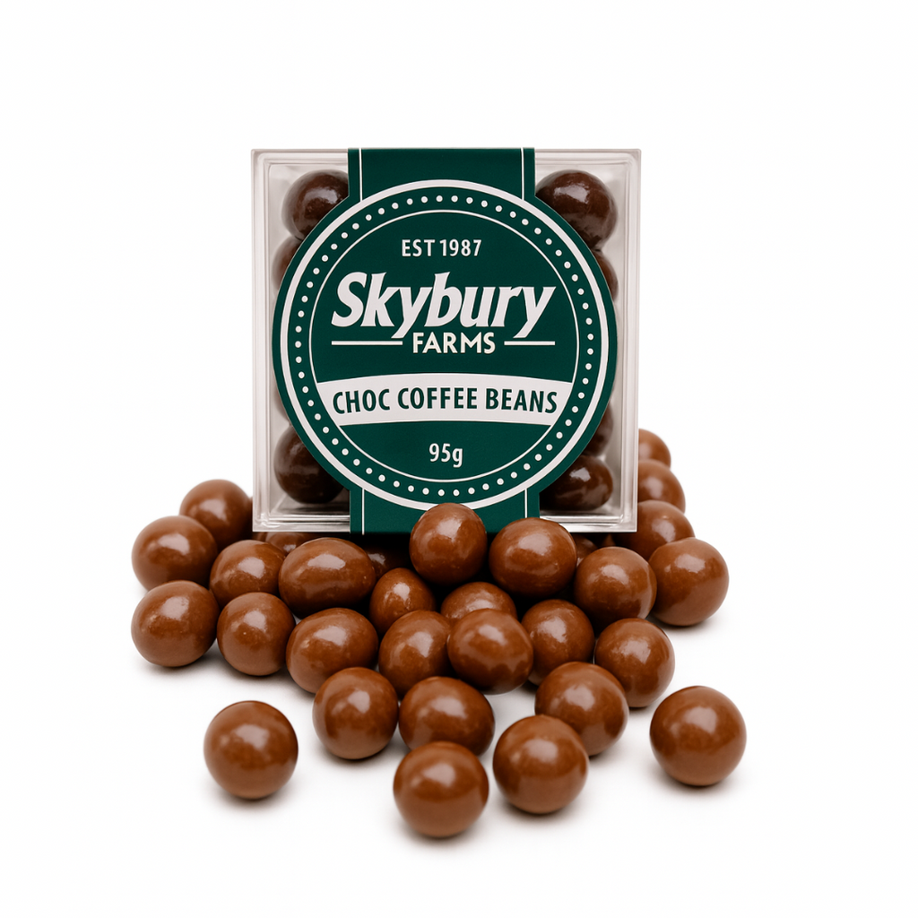 Enjoy a break, a coffee break on the run with Skybury chocolate coated roasted coffee beans. A choice of of quality white, milk and dark chocolate coated coffee beans.